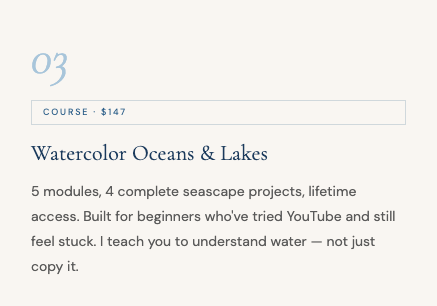 New paintings, course updates, and the occasional honest story about leaving a 20-year career to start over with a paintbrush.