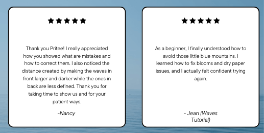 A step-by-step beginner watercolor program to master oceans, lakes, and flowing water - with guidance, feedback, and community.